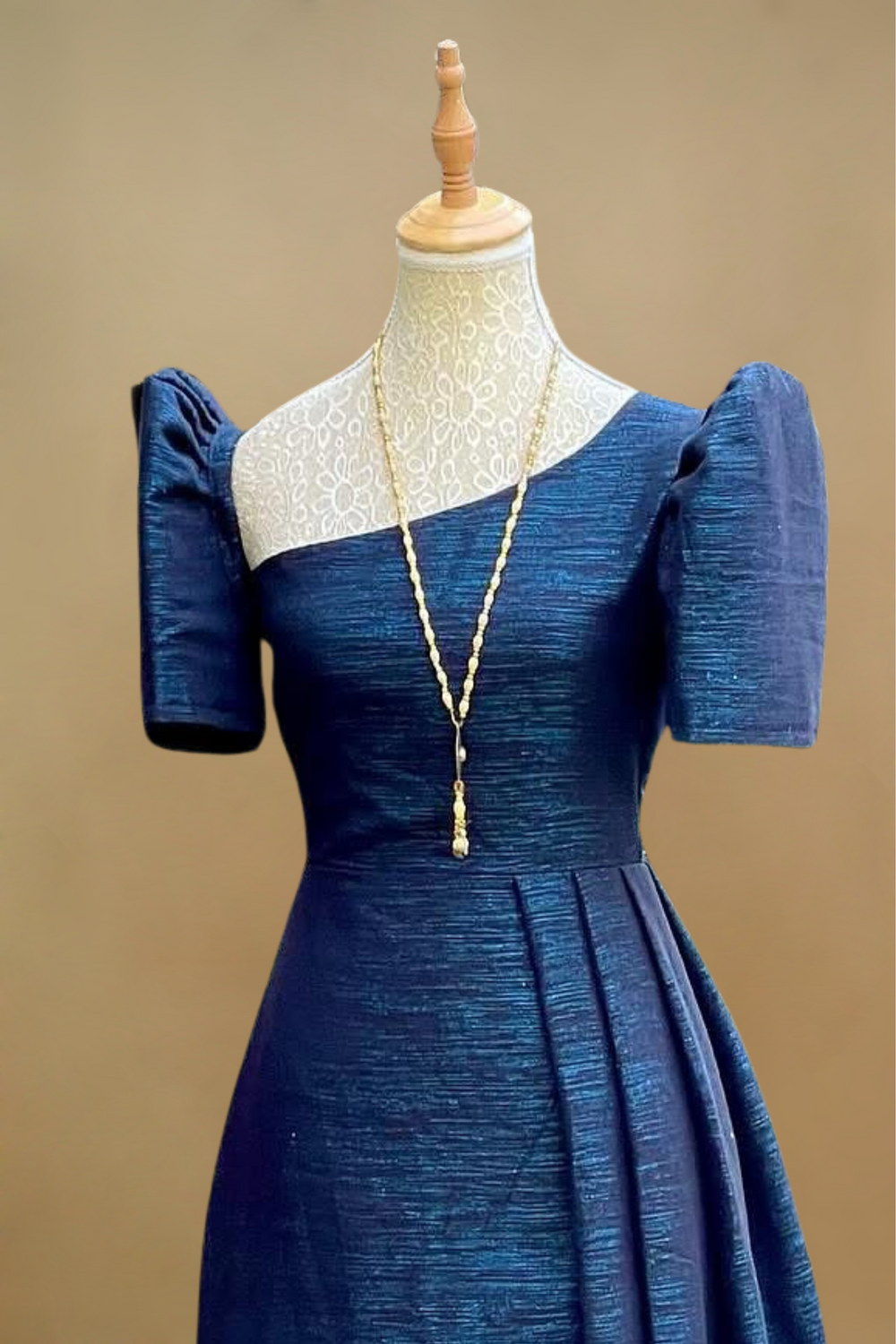 Embrace heritage and elegance with this Filipiniana gown crafted from authentic Inabel handwoven fabric. Featuring iconic butterfly sleeves, a modern asymmetrical drape, and a flattering floor-length silhouette, it blends traditional Filipino artistry with contemporary style. Perfect for weddings, cultural events, and formal occasions celebrating timeless craftsmanship and understated sophistication.