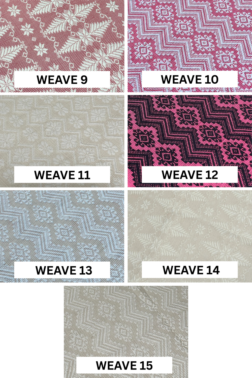Each yard of this exquisite fabric takes two full days to weave by hand, crafted with care by our two expert textile artisans.