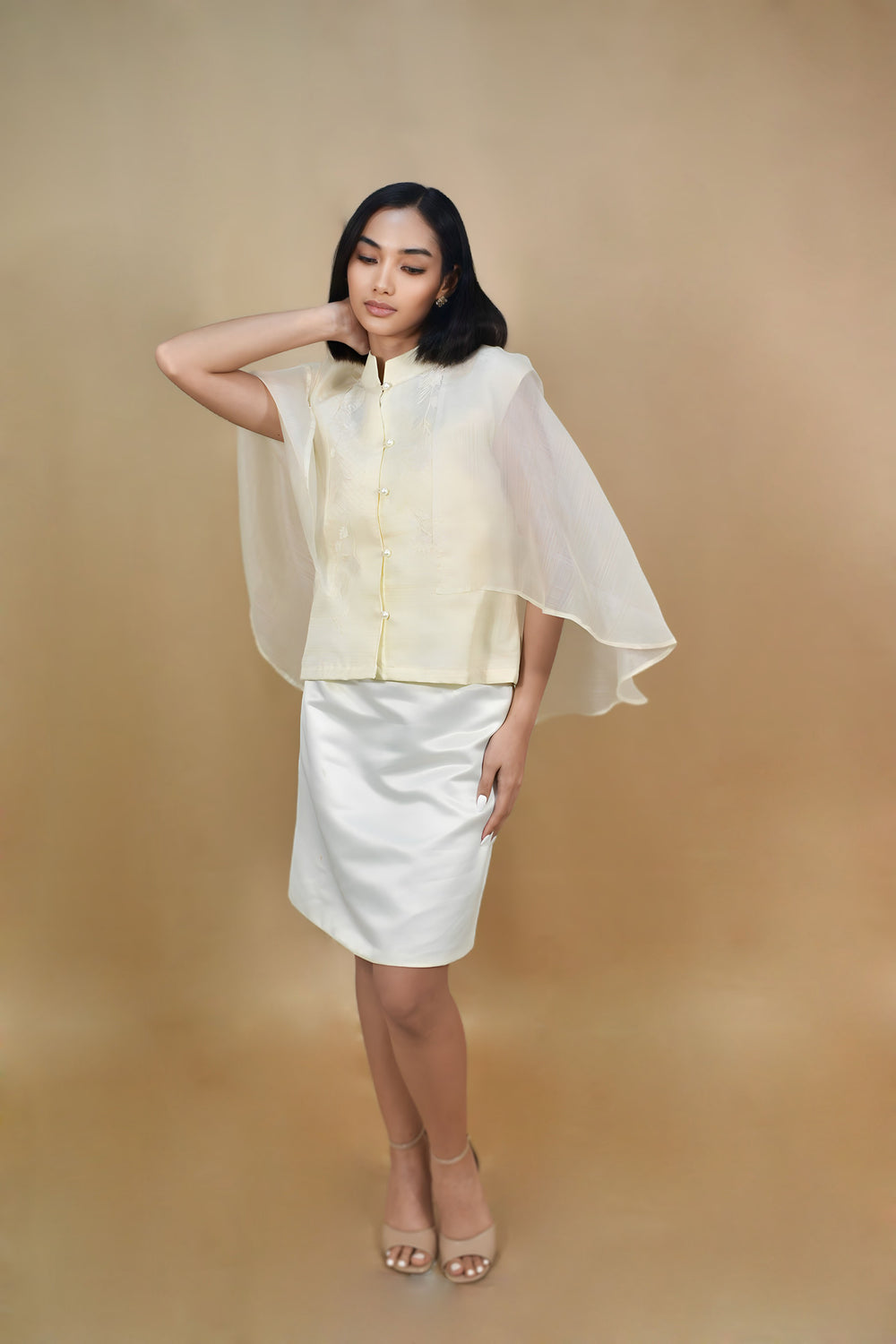 This Filipiniana kimona is made from light, airy cocoon cloth. Wide butterfly sleeves and fine hand-stitched embroidery add a touch of gracious detail. Blending old-world charm with today's polish, it suits festivals, office meetings, or any outfit that needs a bold touch. Wear it to show pride in Filipino culture while enjoying a classic, timeless style.